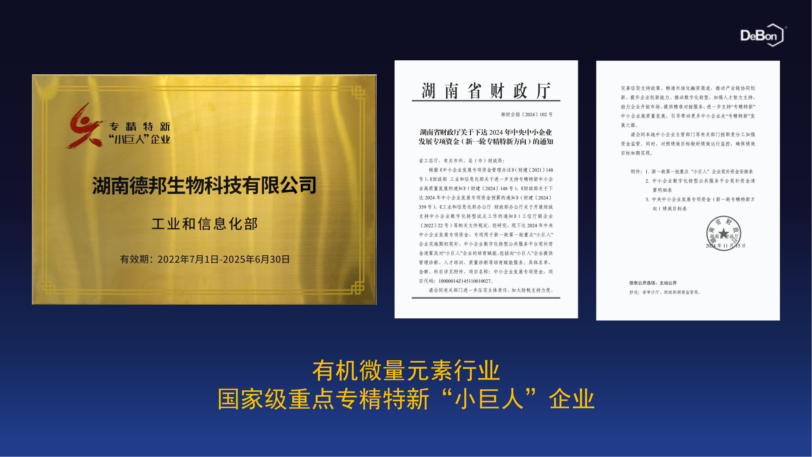 德邦生物20年来,始终专注于满足动植物的精准营养需求和创新有机微量元素低量添加解决方案的研发与应用。现今,已发展成为国家工信部颁发重点专精特新小巨人企业和省级农业产业化龙头企业,2023年成功入选中国科学院上海有机化学研究所博士后创新实践基地。我们肩负推动在饲料、养殖和种植等行业使用有机微量元素替代无机微量元素的社会责任。德邦有机微量有效提高了矿产资源利用率,实现了碳减排的发展目标,顺应了绿色环保和减量增效的发展趋势。德邦有机微量,让农产品更优质,人类更健康。